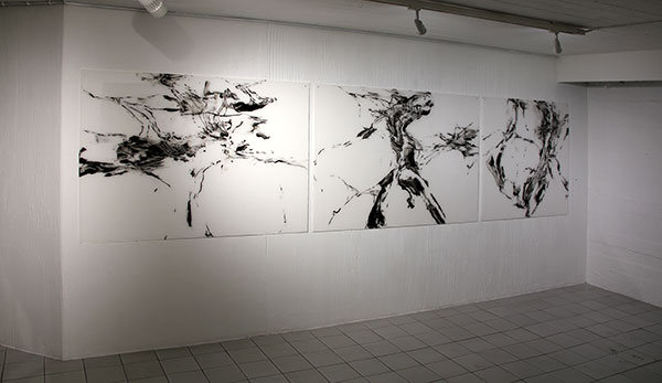 Oil on plexiglass, First from the left 100 x 150 cm, Next two: 100 x 140 cm, private collection